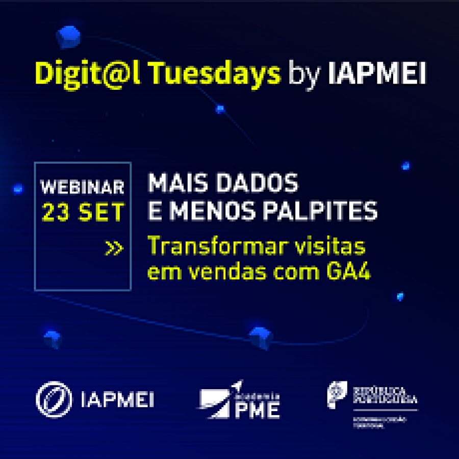 As Digit@l Tuesdays regressam no dia 23 setembro, com o webinar “Mais dados e menos palpites - transformar visitas em vendas com GA4”.